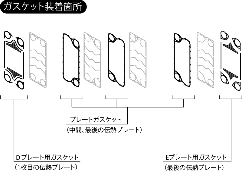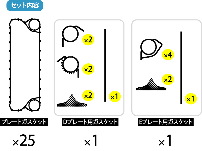 プレートガスケット×25枚、D、Eプレート用ガスケット一式のセットです。